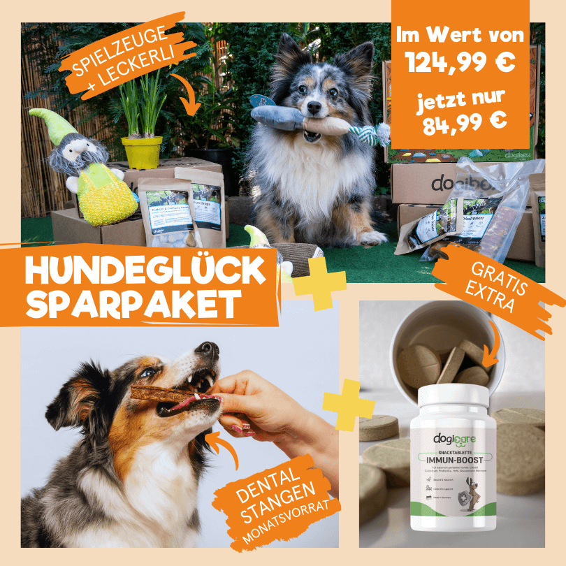 Gönne deinem Liebling das volle Verwöhnprogramm und spare dabei noch bares Geld – mit dem Hundeglück-Sparpaket. Kaufe im Bundle 2 Produkte und erhalte das 3. geschenkt. Sichere dir im Bundle-Deal die beliebtesten dogilife Produkte im Wert von 124,99 € für nur 84,99 € – gleich zuschnappen: