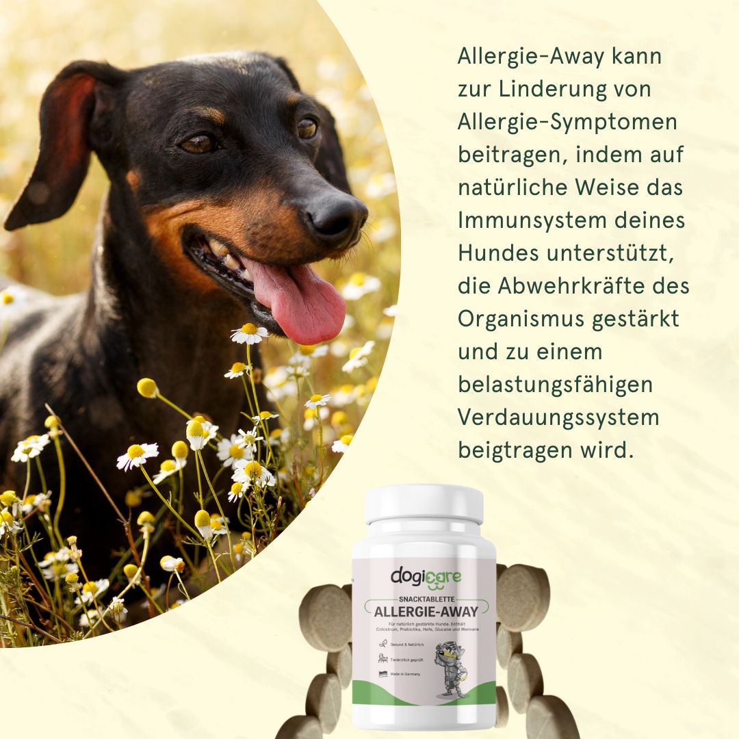 Wir empfehlen Allergie-Away Snacktabletten für alle Hunde ab 6 Monaten.