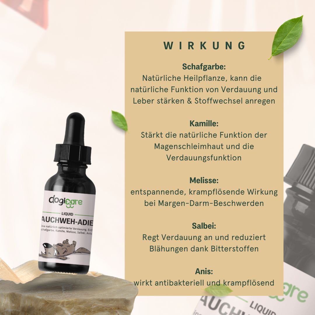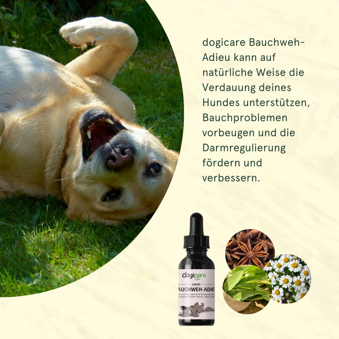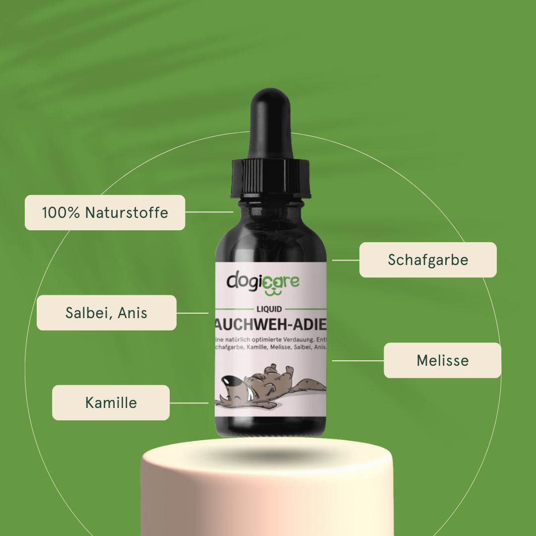 Das Bauchweh-Adieu Liquid ist für alle Hunde ab 6 Monaten geeignet.