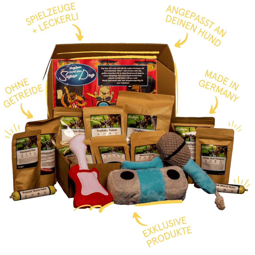 Jede Box enthält 4 hochwertige Spielzeuge und 10 Leckerli made in Germany – natürlich 100% getreidefrei. Erhalte ab nur 56 € Premium-Produkte im Wert von über 100 € pro Box.