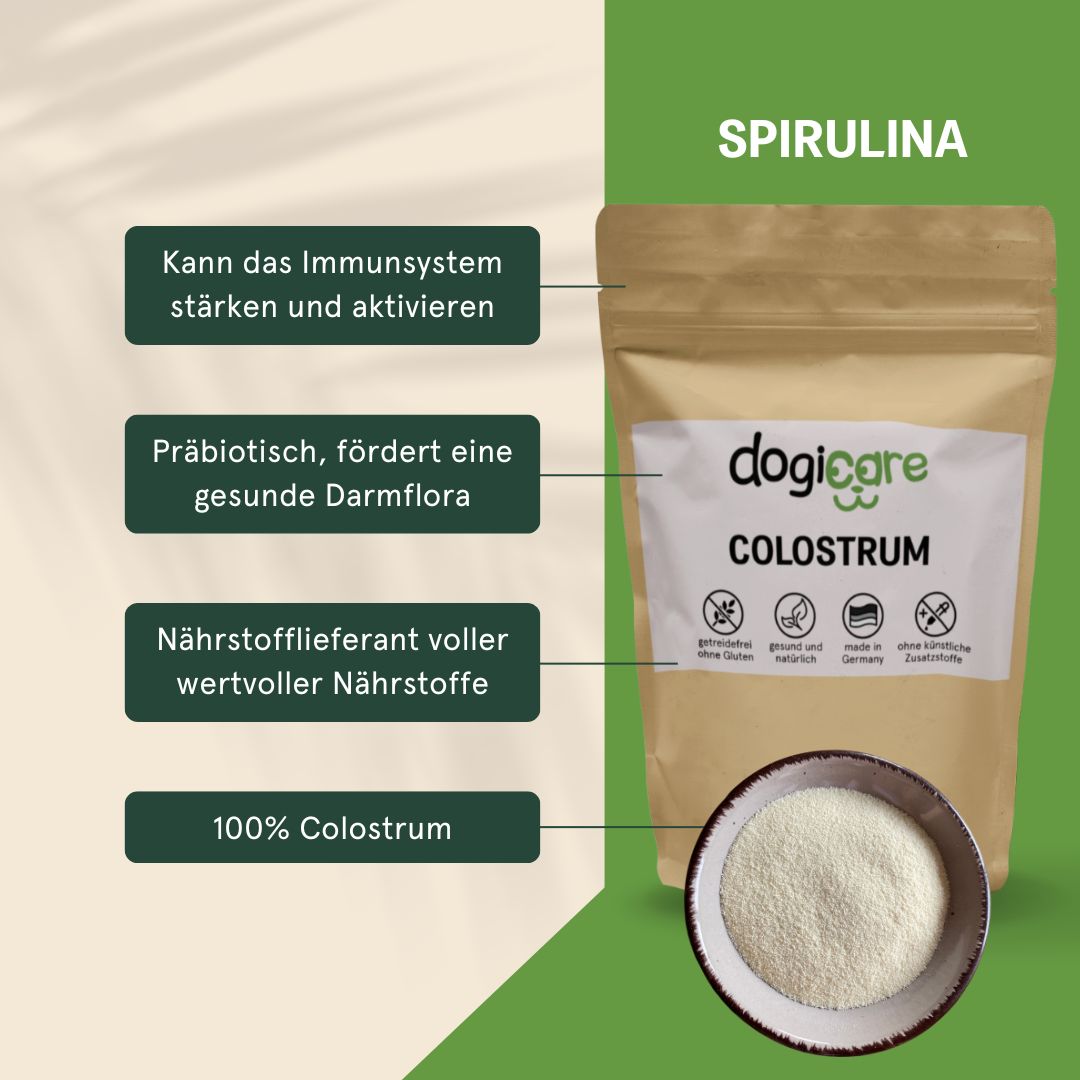 Colostrum hat eine einzigartige Zusammensetzung aus Immunglobulinen, Wachstumsstoffen, antimikrobiellen Inhaltsstoffen, Mineralien und Vitaminen. Das Colostrumpulver wirkt positiv auf Immunität und Verdauung.