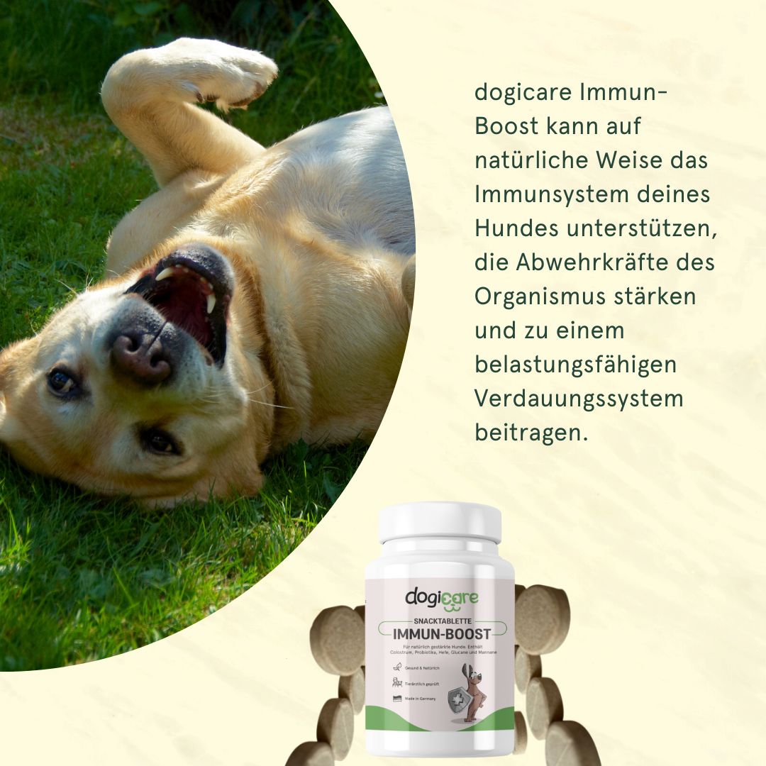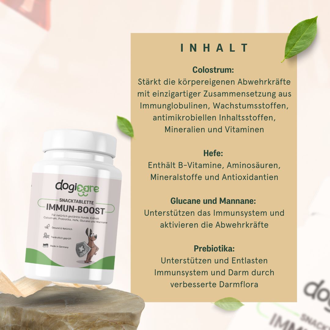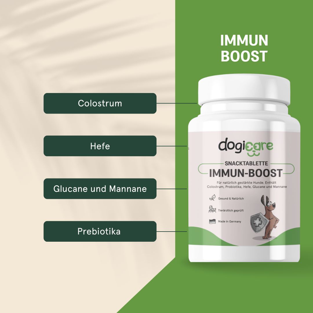 Die wertvollen Inhaltsstoffe von Immun-Boost können das Immunsystem deines Hundes auf natürliche Weise unterstützen und so zu einer starken, körpereigenen Abwehr von Krankheitserregern und Bakterien beitragen.