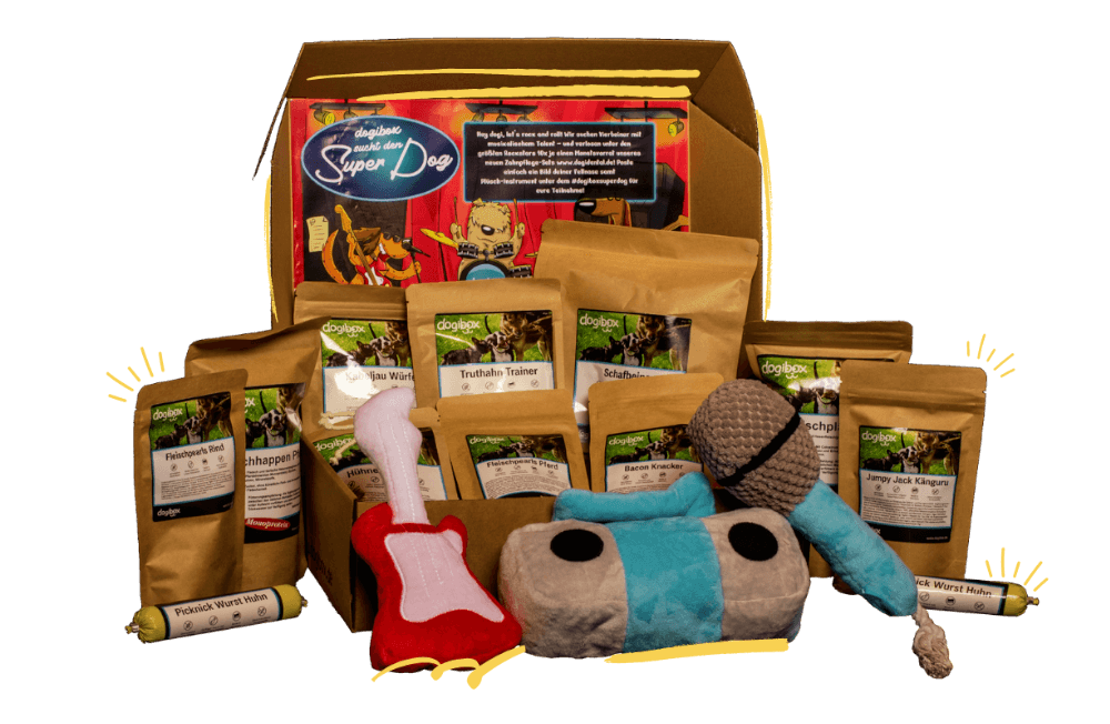 2 Plüsch-Spielzeuge und 5 Leckerli-PackungenHunde-Verwöhnung pur