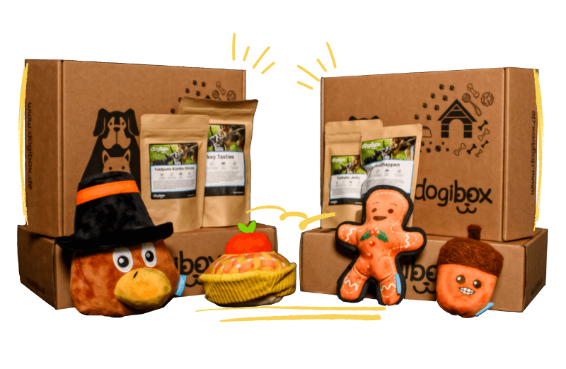 4 Plüsch-Spielzeuge und 10 Leckerli-Packungenfür mehrere Hunde